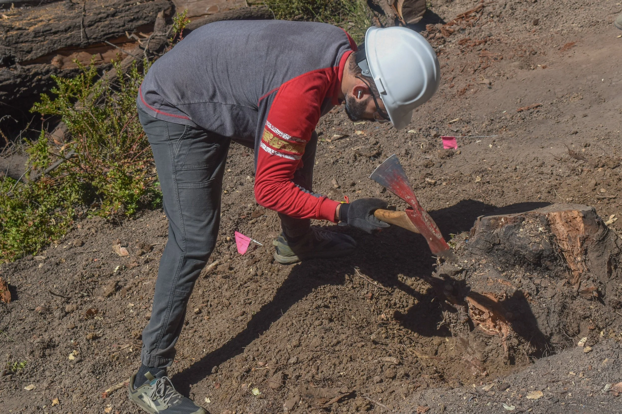 The most difficult task of the day was removing a tree stump from the middle of the rerouted trail section we were working on and after an hour of chopping and hacking at it with pulaskis it wasn't even budging.