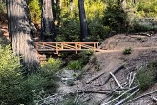 Shortly before Thanksgiving the park opened Hollow Tree Trail which was the last trail linking the basin floor to Middle Ridge Fire Rd after the 2020 fires. The work was a two year effort by the SC Mtns Trail Stewardship's professional crew on the 2.9 mile stretch of trail that included clearing regrowth since the fire, re-aligning sections of trail and building foot bridges. As standard practice for new bridges, they also removed nearby hazard trees that could damage the new structure if they fell.